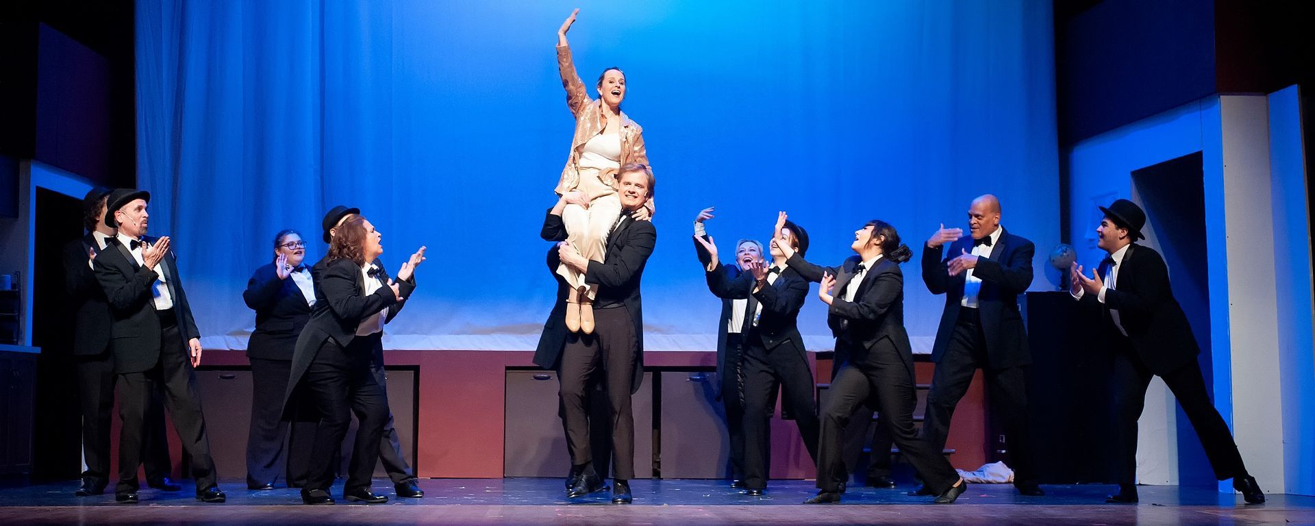 1970s-inspired movement with jazz, tap, square dancing, and character-driven storytelling. The dream sequence also included references to each of the lady’s inspirations: Chicago, Annie Get Your Gun, and Snow White/Fairytales.