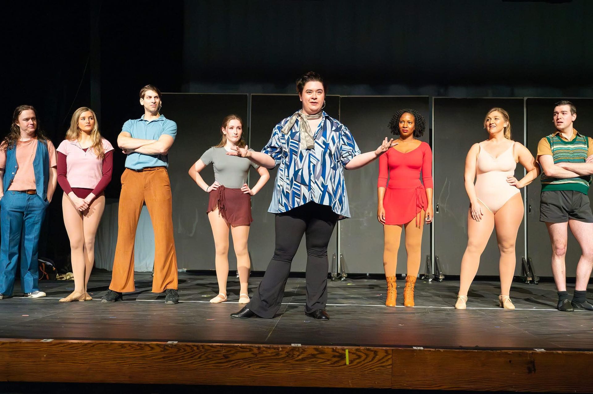 The transcription of the original Broadway choreography was done and then edited, as needed, to highlight the strengths of our cast. (Using original choreography is not only allowed per the licensing agreement, but also highly encouraged with this title.) We were also fortunate to work with Luis Villabon, one of the few trusted “keepers of the A Chorus Line choreography,” who worked with our cast to learn the opening number during a full-day ACL boot camp. As a result, we retained all the iconic moments of this show, with any changes to other pieces of movement or staging still having a hat tip to the original.