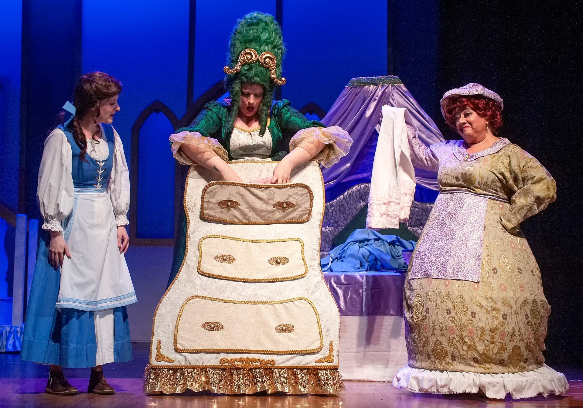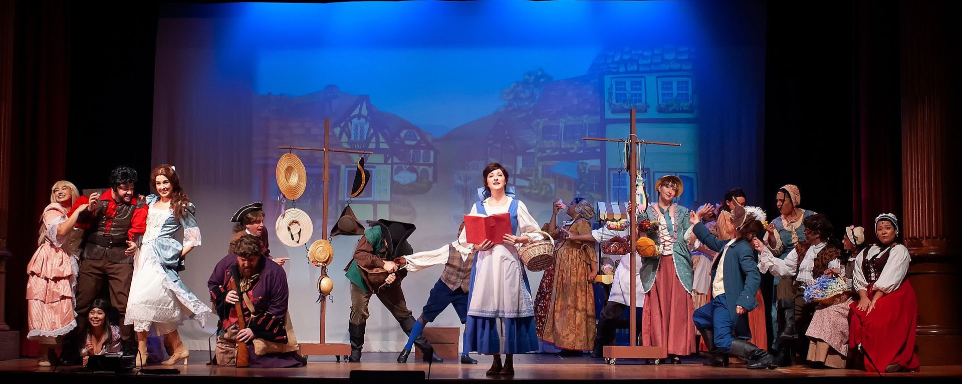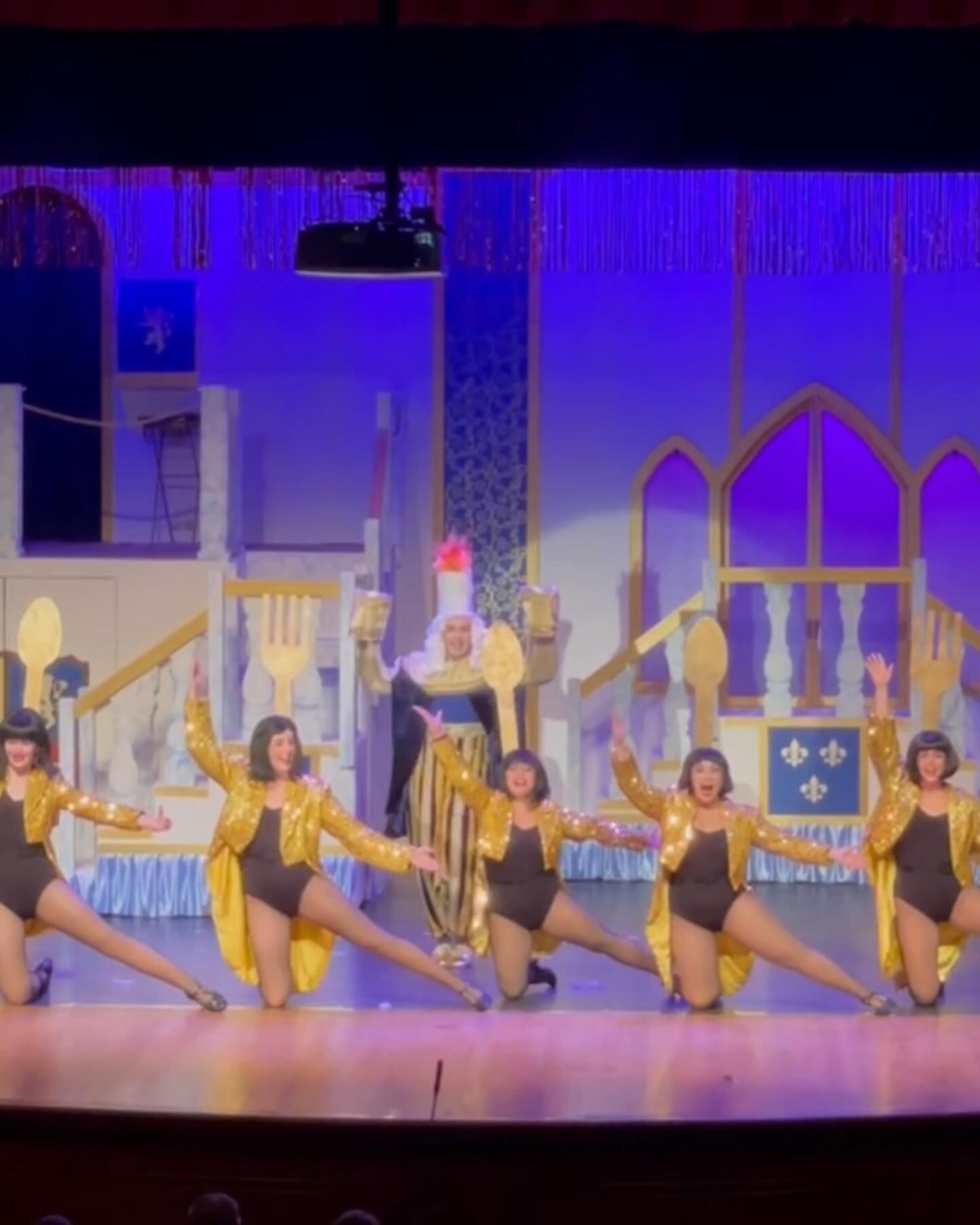 Classic Broadway with a fairytale flair. The movement blended traditional musical theater vocabulary with storytelling-driven gestures and period-influenced stylization. Ensemble work emphasized symmetry, grace, and character, as well as personalities, including those of villagers and enchanted objects.