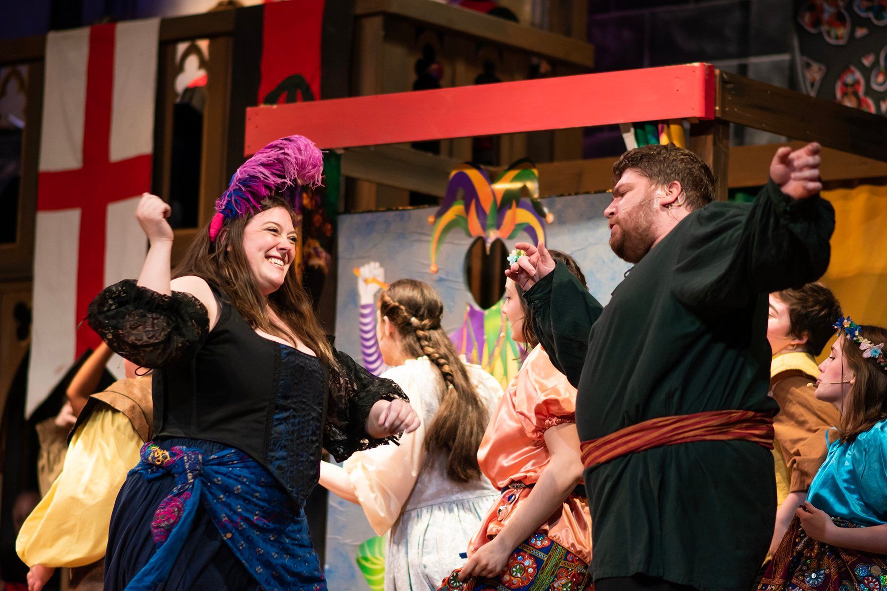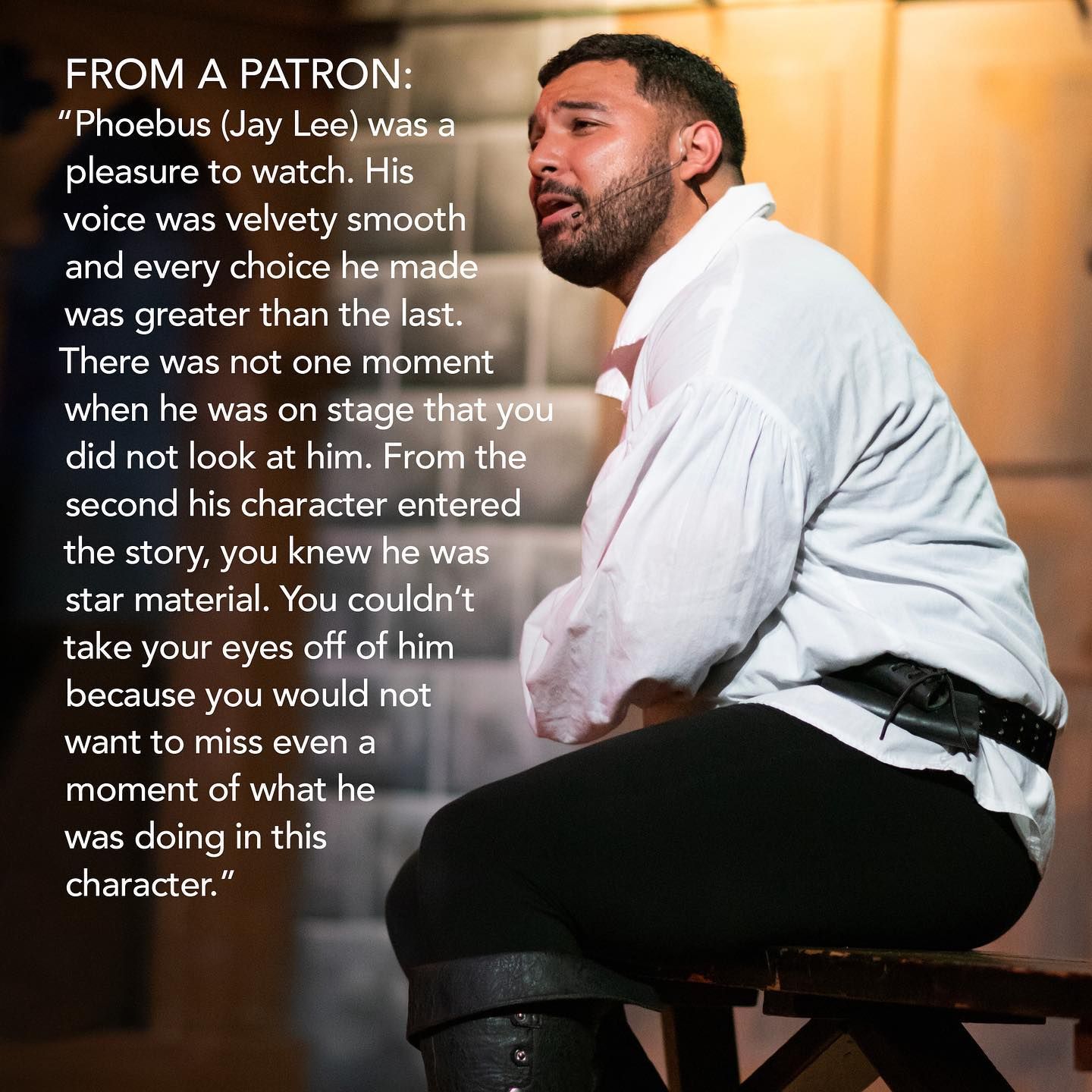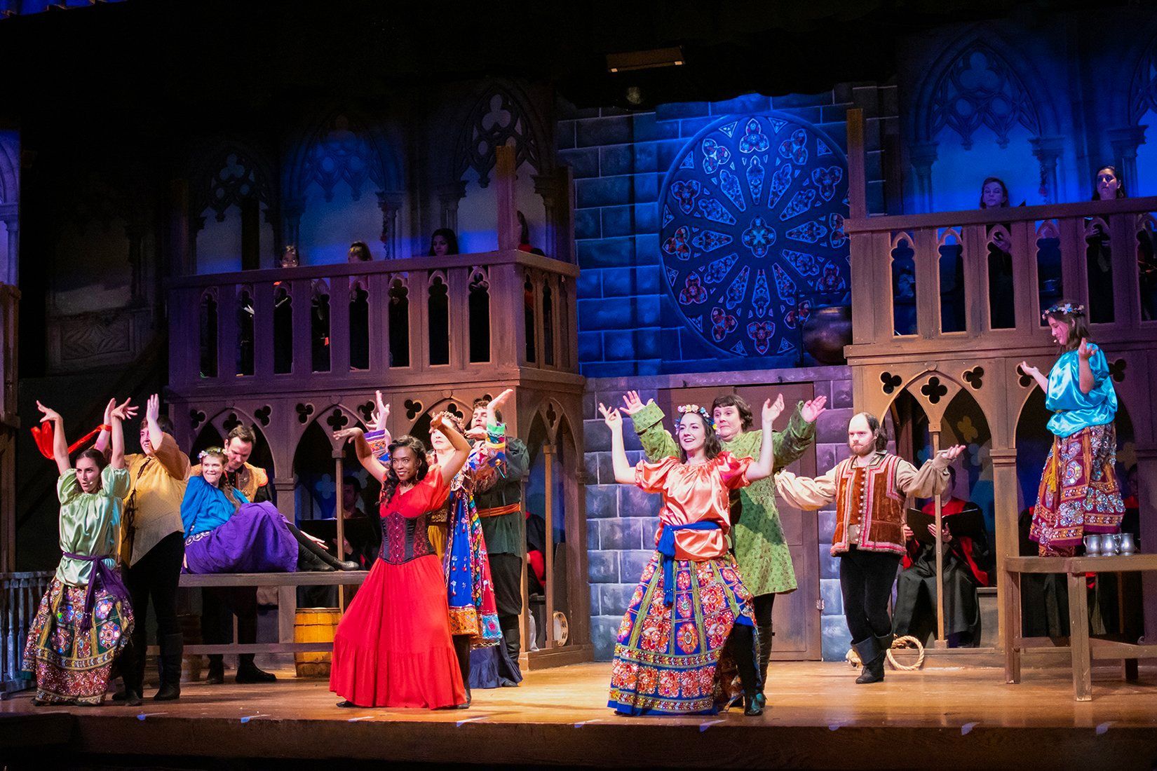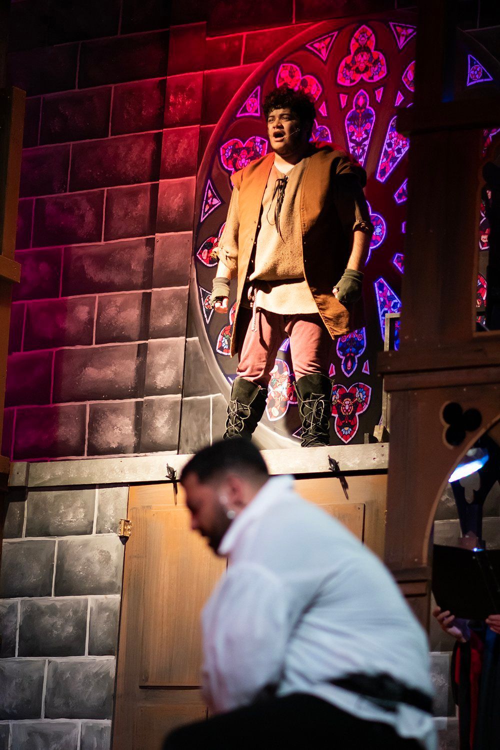- Deceptively Demanding Movement: Hunchback has a sneaky number of dance-heavy sequences. Our acting ensemble rose to the challenge and handled both the technical and cardio demands with precision. Numbers like “Topsy Turvy” and scenes in the tavern and public square were richly layered and full of nuanced physical storytelling.