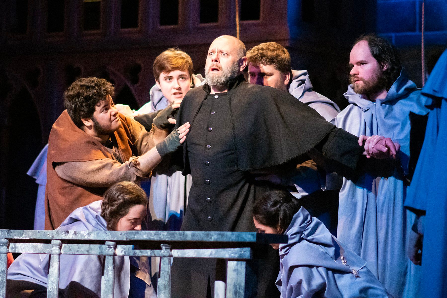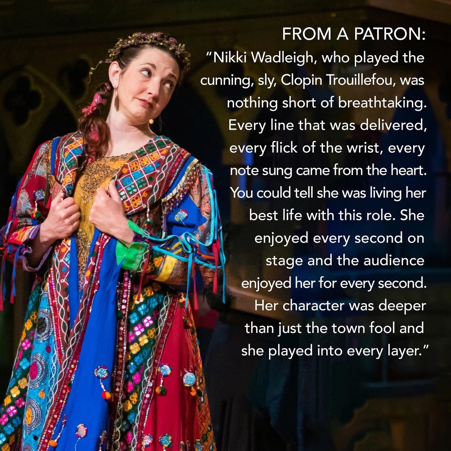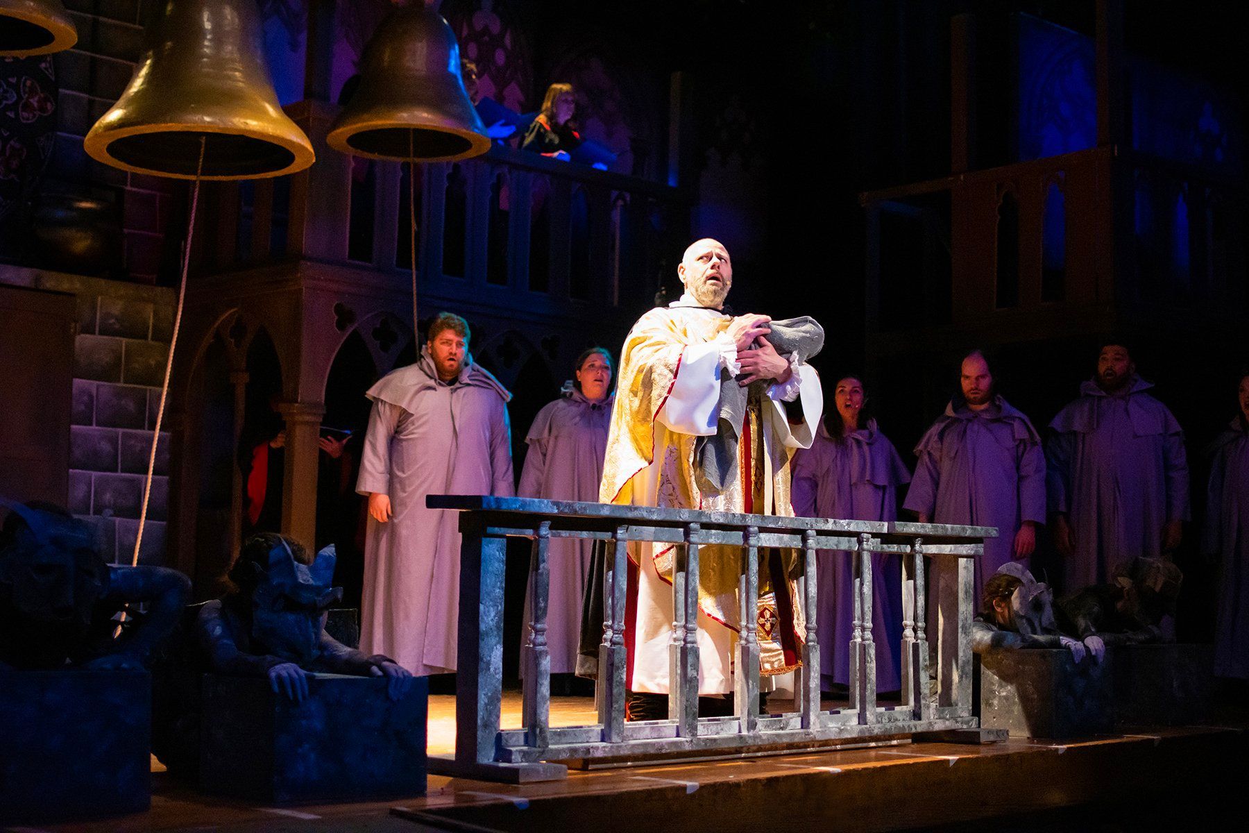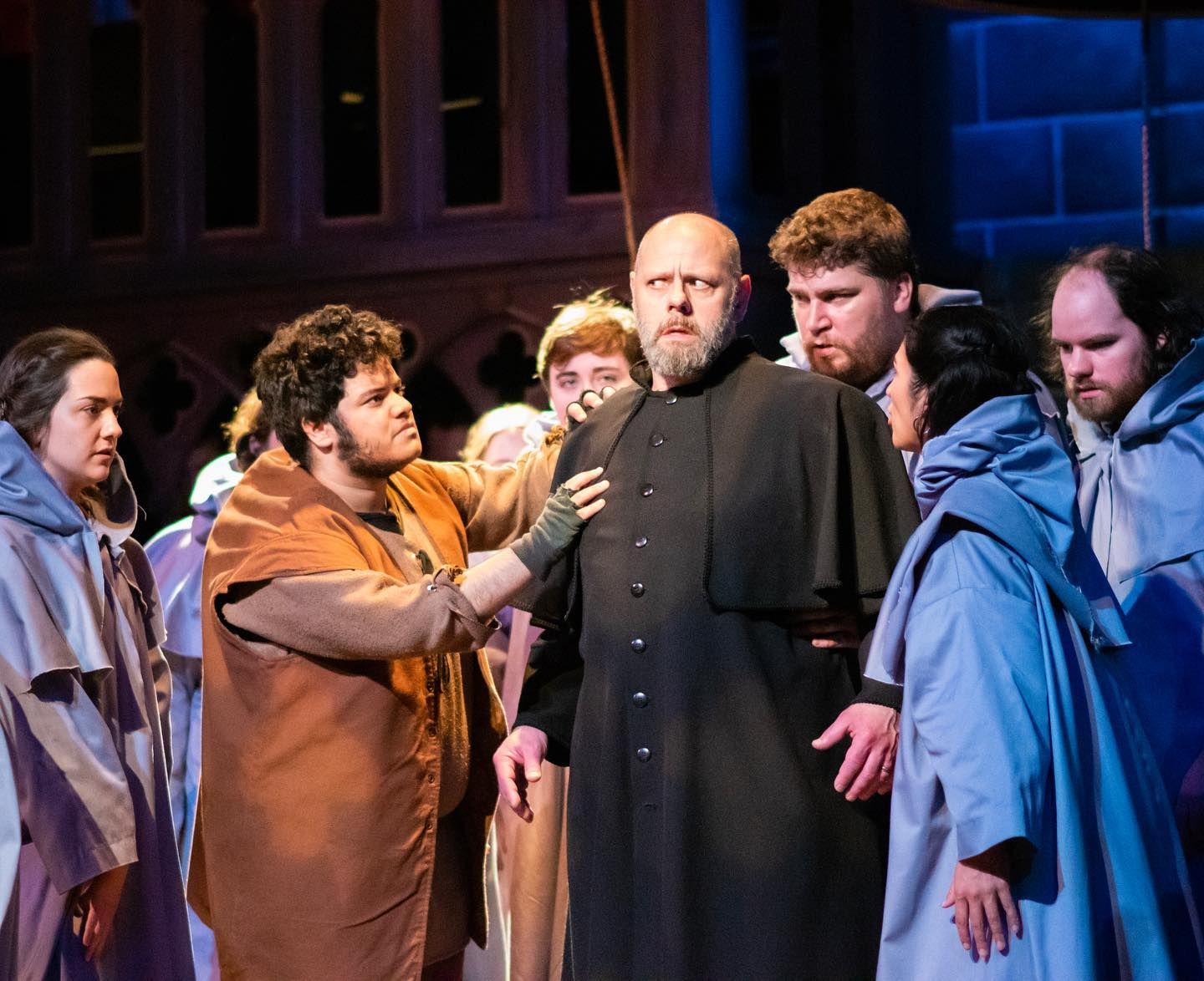 - Deceptively Demanding Movement: Hunchback has a sneaky number of dance-heavy sequences. Our acting ensemble rose to the challenge and handled both the technical and cardio demands with precision. Numbers like “Topsy Turvy” and scenes in the tavern and public square were richly layered and full of nuanced physical storytelling.