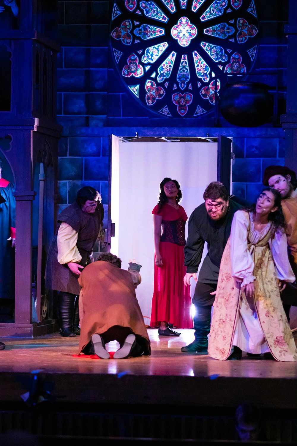 - COVID-19 Reschedule: Our original cast was unable to perform the show because of COVID-19. After learning all of Act 1, we needed to halt production and move to the following year. This required several recasting situations; however, we ended up with a beautiful Hunchback 2.0.